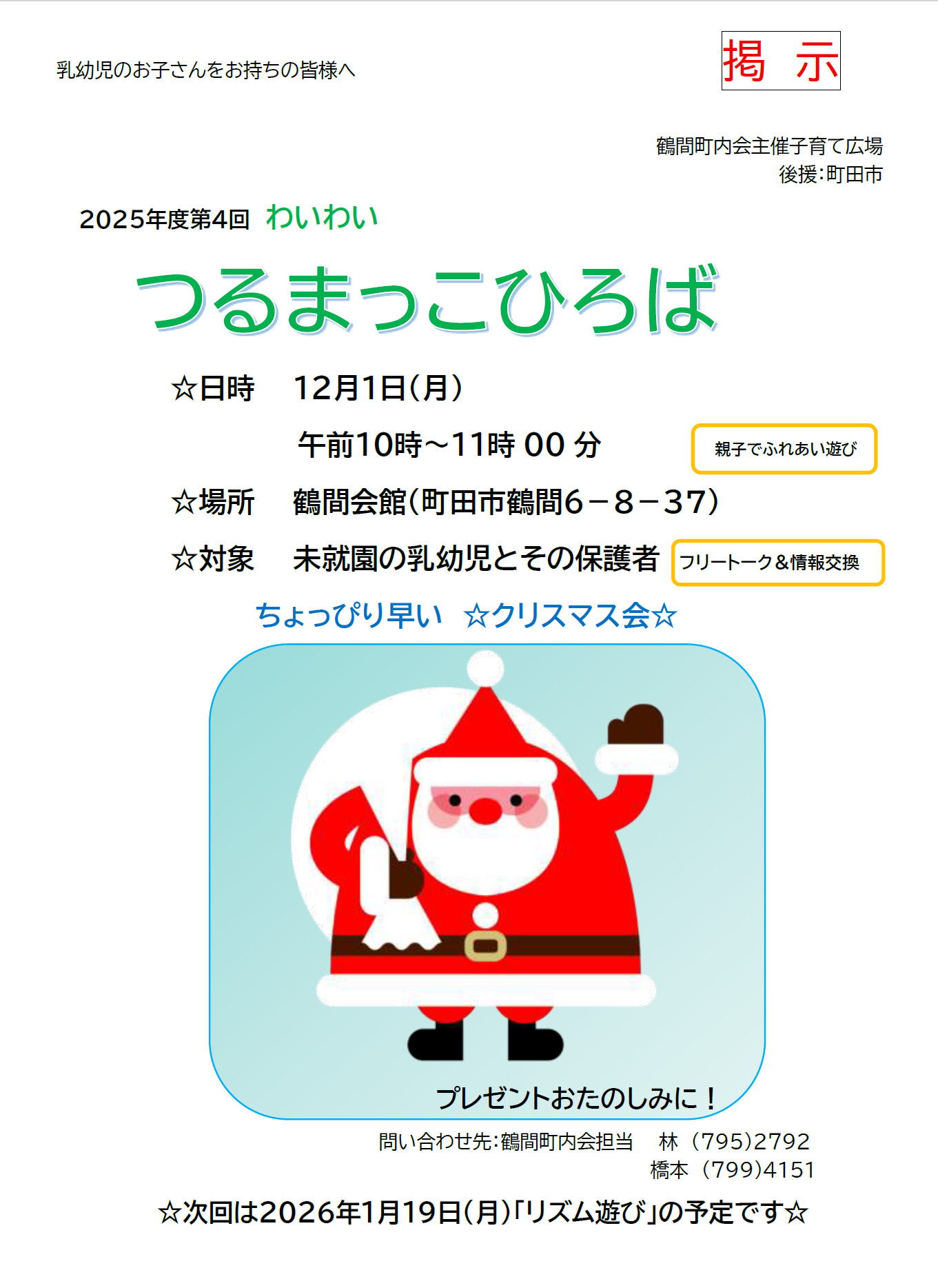 | 12月1日 | 10:00~11:00 | クリスマス会 |